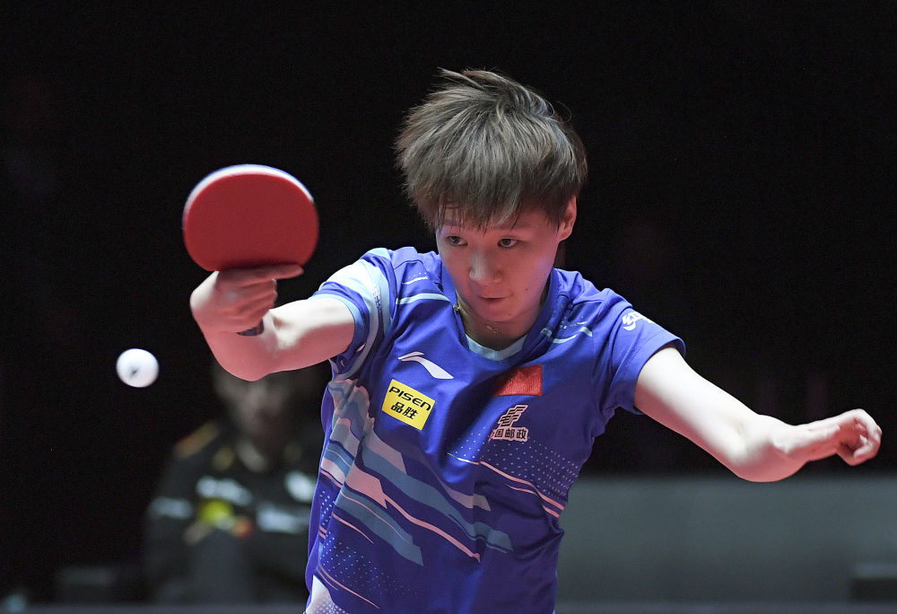 4月16日,王曼昱在比賽中回球。新華社記者 陳鐸 攝