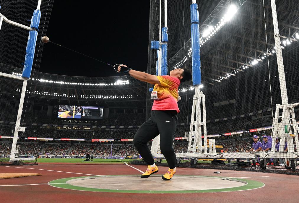 9月15日,2025年世界田徑錦標(biāo)賽女子鏈球決賽在日本東京舉行,圖為中國選手張家樂在比賽中試投。新華社記者 宋彥樺 攝