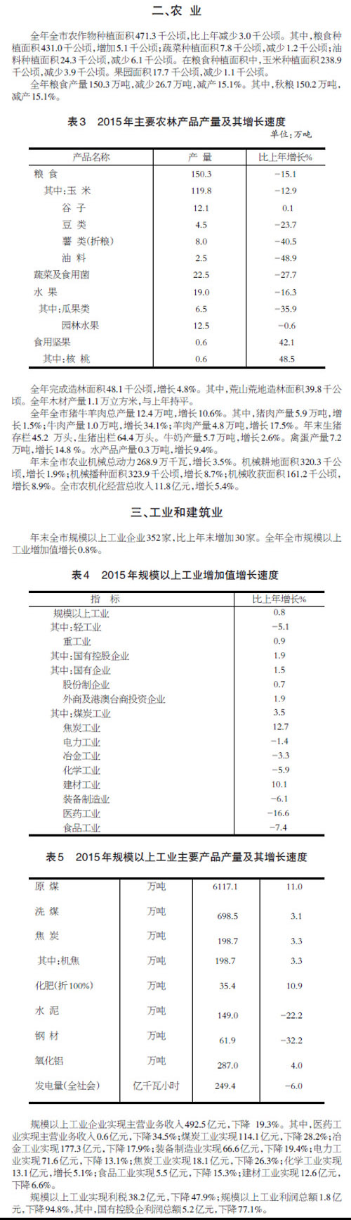忻州市2015年國民經(jīng)濟和社會發(fā)展統(tǒng)計公報