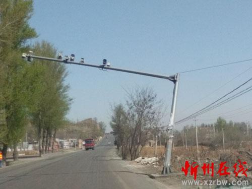 4月10日,記者在108國(guó)道忻府區(qū)和原平交界處看到,一大型交通設(shè)施被車(chē)撞的東到西歪搖搖欲墜,不但影響道路美觀(guān),還給行人及車(chē)輛的交通安全帶來(lái)威脅。一位在附近居住的村民馬大爺說(shuō):這個(gè)交通設(shè)施電桿是車(chē)禍造成的,已經(jīng)好長(zhǎng)一段時(shí)間了,也不見(jiàn)相關(guān)部門(mén)維修,希望相關(guān)部門(mén)能盡快對(duì)損壞的交通設(shè)施進(jìn)行維修,確保道路安全有序暢通。圖為被損壞的交通設(shè)施。(張志遠(yuǎn) 攝)