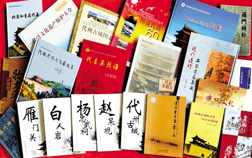 由程培甫、馮祥主編的《雁門碑抄》收錄了唐代以來鐫刻在代縣各地的古碑碑文98篇,詔、敕、封誥19篇,從不同的側(cè)面反映和記錄了代縣悠久的歷史和博大的文化內(nèi)涵,是挖掘、整理、弘揚(yáng)雁門文化極其珍貴的歷史資料。由王文藻主編的《雁門詩抄》,分“人物篇”和“形勝篇”兩本?!叭宋锲眳R集了有詩詠代的代州人,或在代地作過官,或因事涉足過代地的83位歷史人物和詠贊他們的230首詩詞,意在讓今人了解古人的業(yè)績政聲,學(xué)習(xí)古人的品格情操?!靶蝿倨眲t收集了歷代仕宦、詩人、騷客、雅士游覽代州時(shí)寫下的300多首詠贊代州壯美山河、名樓勝跡的古代詩詞,意在讓今人更好地挖掘、了解、弘揚(yáng)博大精深的雁門文化,推動(dòng)代縣旅游事業(yè)的發(fā)展,促進(jìn)縣域經(jīng)濟(jì)的振興。2008年由山西人民出版社出版的《代縣老照片》,收集了代縣從清朝末年到上世紀(jì)50年代拍攝的360多幅珍貴的歷史照片,分為古城遺跡、雁門雄關(guān)、教育篇章、代商風(fēng)采、社會(huì)百態(tài)、名人佚事、革命史詩等七個(gè)篇章,結(jié)為一集。翻閱這些泛黃的老照片,讀者可以欣賞文化名城宏偉壯觀的古老建筑,瞻仰歷史名人的風(fēng)姿俊采,領(lǐng)略代州驕子的雄才大略,感受有識(shí)之士的宏圖大志,體會(huì)莘莘學(xué)子的凌云壯志……透過這些老照片,我們既能追尋歷史,更可展望未來。2009年出版的《圖說代縣60年》,以編年體的形式,按照時(shí)間順序,選取每年在代縣大地上發(fā)生的重大事件、重要人物,或是能真實(shí)反映當(dāng)時(shí)當(dāng)?shù)鼐哂袝r(shí)代特色、風(fēng)土人情的歷史照片780多幅,配以簡明扼要的文字說明,形象生動(dòng)地再現(xiàn)了新中國成立60年來代縣發(fā)展變化的歷史進(jìn)程,是新中國60年發(fā)展變化的一個(gè)縮影。它所包含的信息和所起到的作用會(huì)超越時(shí)空,成為后人認(rèn)識(shí)歷史演變的生動(dòng)教材。同年出版的《代縣古城圖志》則以圖文并茂的形式,向讀者介紹了代州古城的歷史沿革、代州古城的城垣、街衢、商貿(mào)、衙廨、教育、寺廟、風(fēng)俗風(fēng)物、歷史人物等內(nèi)容,展示了古代州悠久的歷史和深厚的文化底蘊(yùn),為人們提供了一個(gè)了解代州古城的窗口。