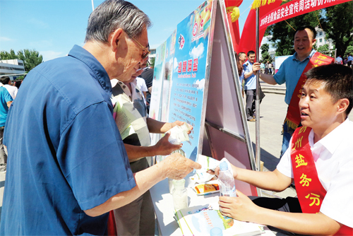 忻州市食品藥品監(jiān)管局、忻州市公安局等相關單位通過擺放宣傳展板、設立咨詢臺、發(fā)放宣傳資料等形式,為過往市民宣傳普及食品安全知識。各單位執(zhí)法人員現(xiàn)場接受咨詢并為群眾解疑釋惑,詳細講解《食品安全法》及相關法律法規(guī),以及怎樣預防食物中毒、保障學校食堂衛(wèi)生安全等知識。據(jù)統(tǒng)計,活動當天共發(fā)放宣傳資料1萬余份,接待150多人現(xiàn)場咨詢,收到了良好的宣傳效果。
