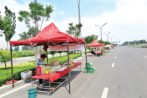 希望有關(guān)部門,加強(qiáng)對(duì)瓜農(nóng)交通安全教育,并采取有效措施,及時(shí)制止他們在馬路擺攤叫賣行為。同時(shí),希望廣大司機(jī)不要隨意停車,以免影響交通安全。圖為擺在旭來街上的香瓜攤點(diǎn)。(張志遠(yuǎn) 攝)