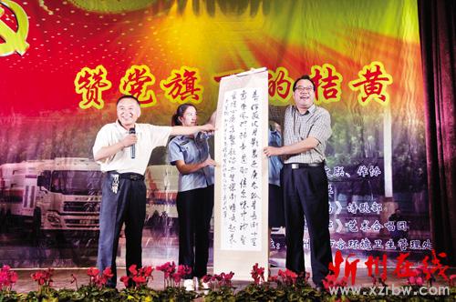 本報(bào)訊 7月3日晚8時(shí),忻府區(qū)文聯(lián)、忻府區(qū)作家協(xié)會(huì)和遺山詩(shī)社在忻州市住建局禮堂共同舉辦了一場(chǎng)大型詩(shī)歌吟誦演唱會(huì),用詩(shī)的語(yǔ)言、歌的韻律抒發(fā)了對(duì)黨的祝福和對(duì)環(huán)衛(wèi)工人的贊美。7月1日是黨的生日,在此之際,他們用詩(shī)歌表達(dá)對(duì)黨的熱愛,也表達(dá)對(duì)在黨旗下默默付出的勞動(dòng)者們的敬意。