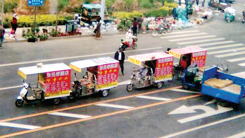 在市區(qū)街頭經(jīng)常會(huì)出現(xiàn)大規(guī)模宣傳車(chē)隊(duì),長(zhǎng)時(shí)間停留在居民區(qū)或某街道,用高音喇叭不停地播放某商場(chǎng)促銷(xiāo)信息,嚴(yán)重?cái)_民。還有一種現(xiàn)象,收舊家電者,每天早上6點(diǎn)多就在公園街早市用高音喇叭呼叫、演唱,直到中午才走,這種高分貝噪音長(zhǎng)時(shí)間困擾著附近居民。給城管部門(mén)反映后能消停幾天,之后這些流動(dòng)商販又會(huì)出現(xiàn)在另外的居民區(qū)。請(qǐng)相關(guān)部門(mén)管管流竄于市區(qū)的這些擾民噪音。(一網(wǎng)友攝于7月6日)