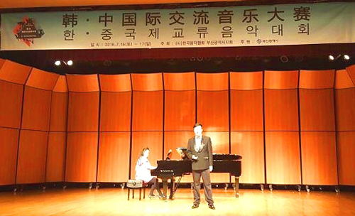 首屆“韓·中國際交流音樂大賽”是由中韓共同主辦的高標(biāo)準(zhǔn)國際音樂賽事,大賽為所有懷揣藝術(shù)才華及夢想的選手提供展示自我、相互交流的全新綜合性國際平臺。從今年5月份開始,即在北京、天津、上海、浙江、湖北、江蘇、江西、四川、河北、山西、甘肅等省市展開了初賽角逐,甄選出200名選手。7月赴韓參加總決賽,決賽由韓國釜山音樂協(xié)會主辦,評委由釜山大學(xué)、東亞大學(xué)、慶星大學(xué)、釜山女子大學(xué)(現(xiàn)新羅大學(xué))、高神大學(xué)、東義大學(xué)、釜山教育大學(xué)等知名音樂院校教授擔(dān)任。