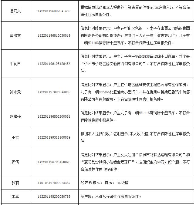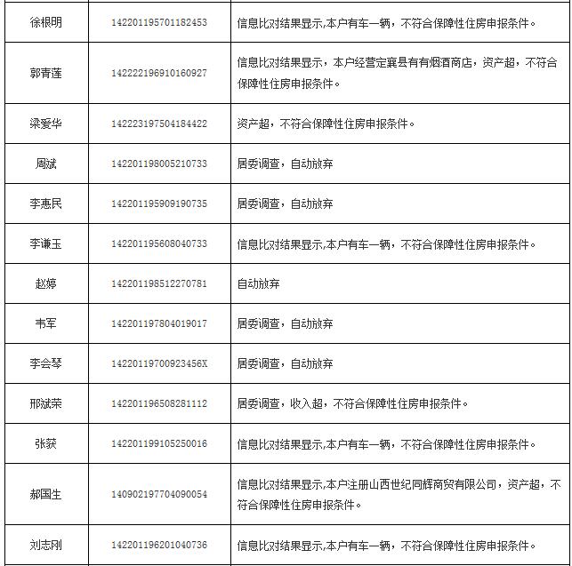 2014年申報公(廉)租房不符合保障條件花名表