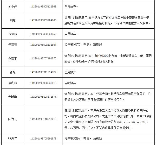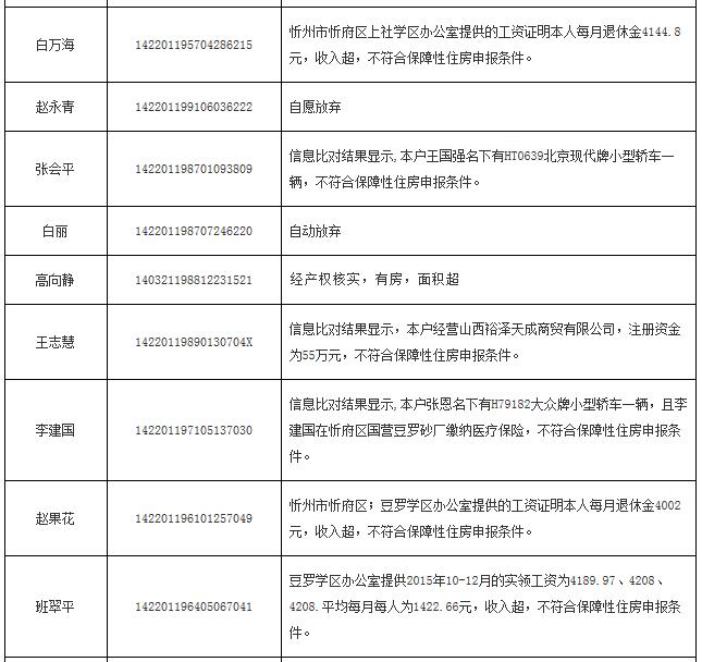 2014年申報公(廉)租房不符合保障條件花名表