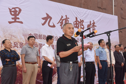 市長城學(xué)會領(lǐng)導(dǎo)宣讀《長城保護(hù)倡議書》 在首發(fā)式現(xiàn)場明月樓前的名人墻廣場,彩旗飄舞,標(biāo)語高懸,代縣鄉(xiāng)村的威風(fēng)鑼鼓隊(duì)和秧歌隊(duì)趕來助威。市縣兩級郵政部門搭起兩大排營業(yè)棚,立起郵政信箱,數(shù)十位郵政業(yè)務(wù)人員在銷售首發(fā)的郵票和各種長城郵品。全國各地的集郵愛好者特意趕來,云集雁門關(guān),或購票,或蓋日戳。前去雁門關(guān)旅游的外地游客也涌進(jìn)購票的人潮。首發(fā)現(xiàn)場人山人海,熱鬧非凡,不到一個小時,上面分配下來的郵票和首日封全部售罄,忻州本地開發(fā)的《忻州長城》郵折和紀(jì)念封,倍受郵友青睞。一位從西安趕來的集郵愛好者來得稍有點(diǎn)晚,版票和首日封已經(jīng)售完,著急埋怨之下,忙購買了幾份《忻州長城》的郵折,將票撕下,貼到信封上寄到外地。還有從上海、廣州等地趕來的郵友,將貼有整版郵票的信函寄往法國、俄羅斯、日本等許多國家。據(jù)悉,這天光從雁門關(guān)寄出的貼有《長城》郵票的信函已逾萬份。