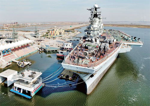 2000年8月,俄羅斯“基輔”號(hào)航母越過(guò)北冰洋、大西洋、印度洋、太平洋,抵達(dá)中國(guó)天津。2006年4月,泰達(dá)控股旗下的泰達(dá)航母主題公園有限公司成立。公司以“基輔”號(hào)航母旅游資源為主體,將園區(qū)打造成為世界上最大的軍事主題公園。2011年,主題公園收入突破一億元,成為天津市首個(gè)收入過(guò)億的單一景點(diǎn)。