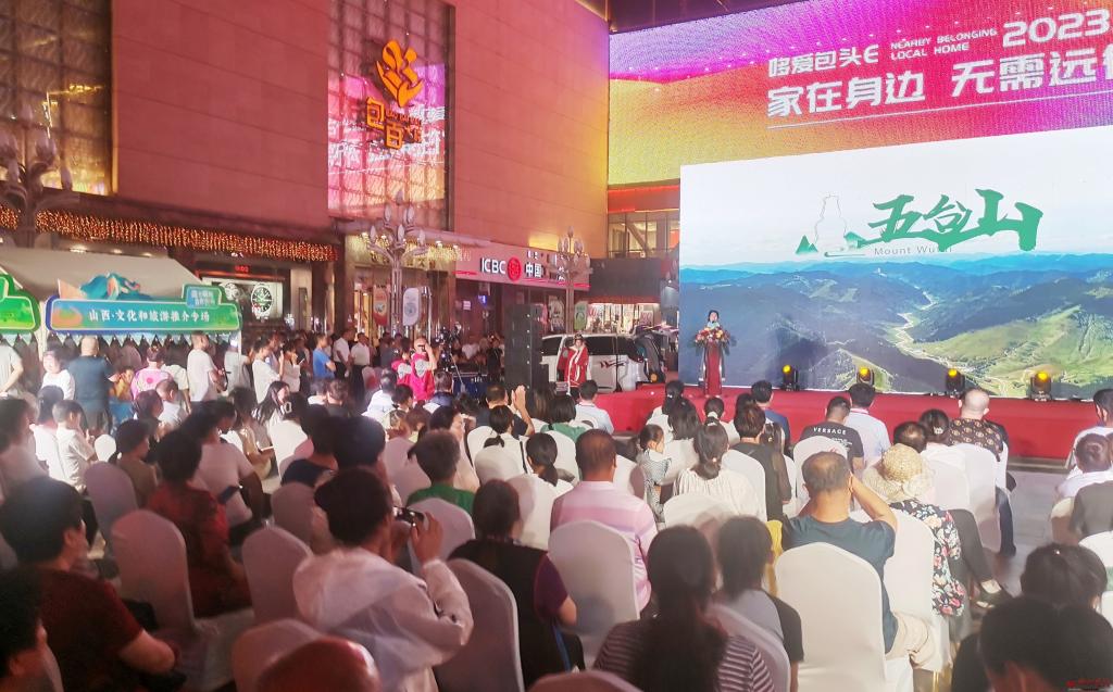 8月13日晚,包頭的推薦會現(xiàn)場,文旅星推官崔琴悅正在進(jìn)行五臺山景區(qū)推薦。宮清華攝