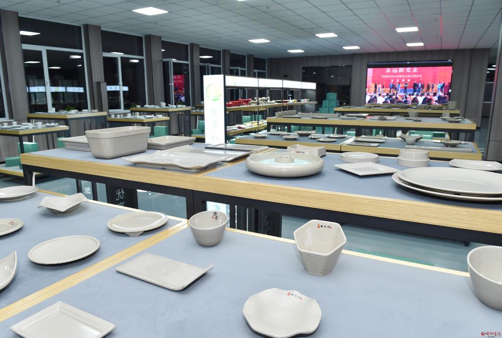 在山西優(yōu)享科技有限公司觀摩檢查秸稈循環(huán)利用綠色器皿項(xiàng)目建設(shè)情況及發(fā)展壯大村集體經(jīng)濟(jì)情況。馮曉磊 攝