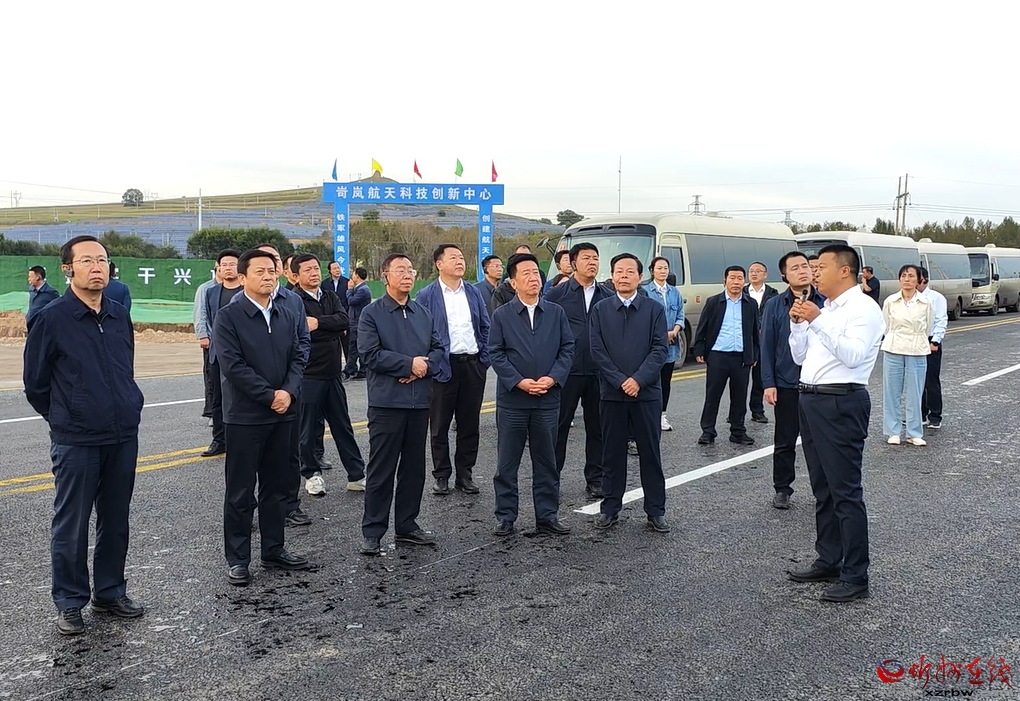 在岢嵐縣航天科技產(chǎn)業(yè)園觀摩檢查基礎(chǔ)設(shè)施項(xiàng)目建設(shè)情況。馮曉磊 攝