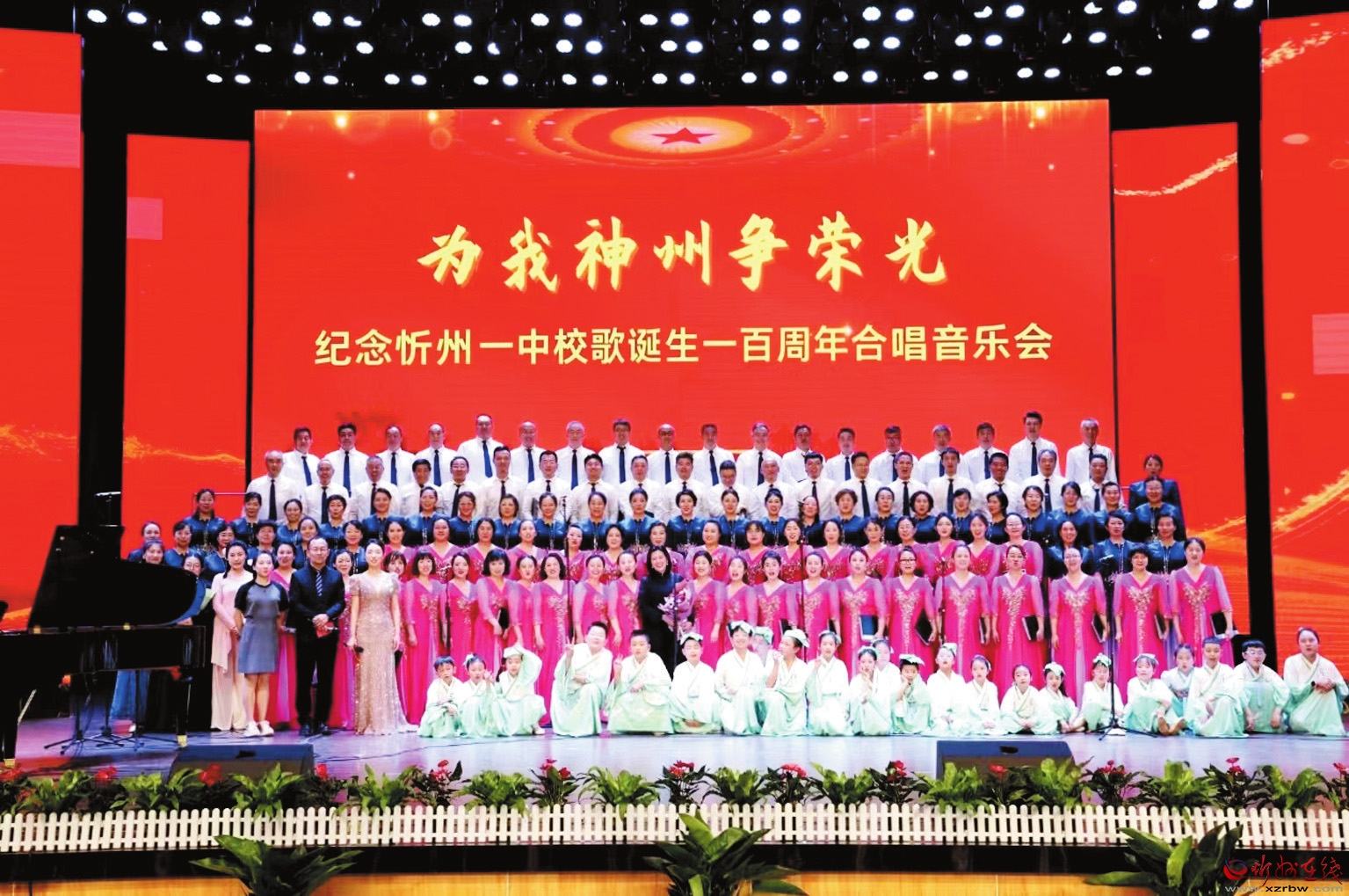 忻州一中紀(jì)念校歌誕生100周年合唱音樂會(huì)現(xiàn)場(chǎng)。 本報(bào)記者 張存良攝