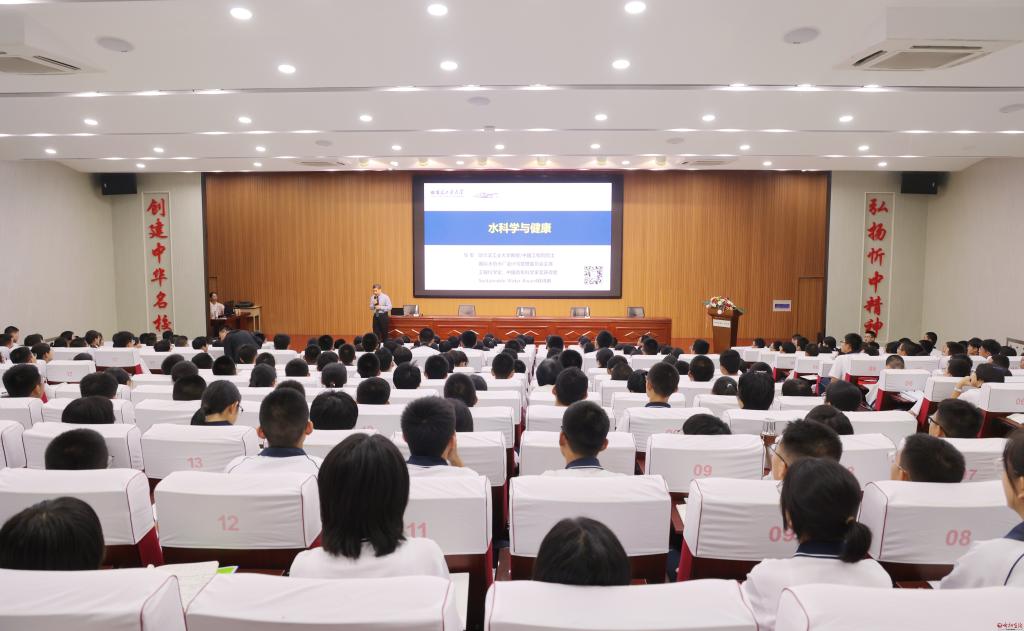 專題報告現(xiàn)場。范琛 攝 在忻州一中科技樓多功能報告廳,馬軍為師生們作了題為“水科學(xué)與健康”的專題報告,圍繞水中礦物質(zhì)及微量元素對健康的影響、飲用水凈化技術(shù)、源頭減污降碳技術(shù)、智慧水務(wù)與智能水廠等方面,立足高中教育階段學(xué)情,為廣大師生闡述水科學(xué)的內(nèi)涵與知識,并對哈工大生態(tài)文明相關(guān)學(xué)科的現(xiàn)狀與發(fā)展提出了深刻的見解。在場同學(xué)紛紛表示,馬軍院士淵博的學(xué)識和對專業(yè)發(fā)展的前景展望讓人受益匪淺,不僅開拓了大家探尋科學(xué)的視野與氣度,同時也領(lǐng)略了院士專家的家國情懷、學(xué)術(shù)風(fēng)采與人格魅力,激發(fā)了大家積極投身科技強(qiáng)國實踐,努力成為可堪大用、能擔(dān)重任的棟梁之材。 報告會前,馬軍圍繞農(nóng)業(yè)循環(huán)可持續(xù)發(fā)展,與市農(nóng)業(yè)農(nóng)村局有關(guān)負(fù)責(zé)人進(jìn)行了深入交流,從戰(zhàn)略視角多維度分析“碳達(dá)峰”“碳中和”雙碳目標(biāo),科普農(nóng)廢資源化能源化循環(huán)利用理念,指出農(nóng)廢循環(huán)利用不僅可以降低秸稈運(yùn)輸成本,同時能夠增加土壤有機(jī)質(zhì)、減少農(nóng)藥化肥使用、降低污染,有效防止土地退化和水土流失。馬軍表示,希望與我市在打造特色農(nóng)業(yè)產(chǎn)業(yè)園、建設(shè)制備黃腐酸生物有機(jī)肥生產(chǎn)線等方面進(jìn)行深度合作,通過合作研究、技術(shù)創(chuàng)新、宣傳推廣等多種方式推動實現(xiàn)雙碳目標(biāo),助力現(xiàn)代農(nóng)業(yè)發(fā)展。