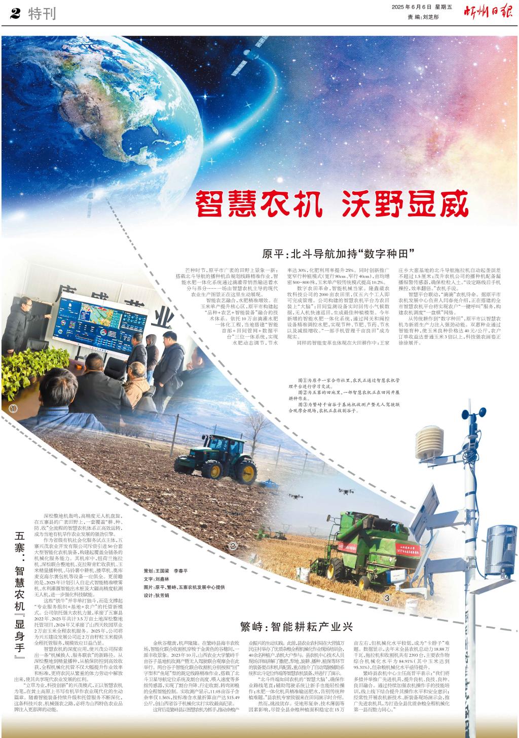 芒種時(shí)節(jié),原平市廣袤的田野上景象一新:搭載北斗導(dǎo)航的播種機(jī)沿規(guī)劃線路精準(zhǔn)作業(yè),智能水肥一體化系統(tǒng)通過(guò)滴灌帶悄然輸送著水分與養(yǎng)分……一場(chǎng)由智慧農(nóng)機(jī)主導(dǎo)的現(xiàn)代農(nóng)業(yè)生產(chǎn)圖景正在這里生動(dòng)展現(xiàn)。