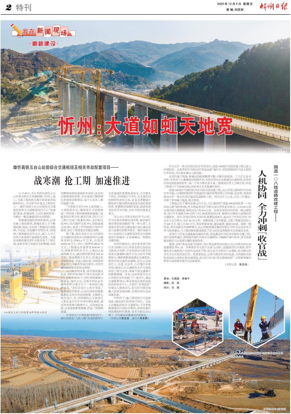 作為太忻一體化經(jīng)濟(jì)區(qū)的先導(dǎo)性項(xiàng)目,國(guó)道108線忻州段改建工程已進(jìn)入沖刺階段。這條貫穿忻州南北的“黃金走廊”通車(chē)后,將顯著縮短忻州至太原的行車(chē)時(shí)間,為區(qū)域發(fā)展注入新動(dòng)能。