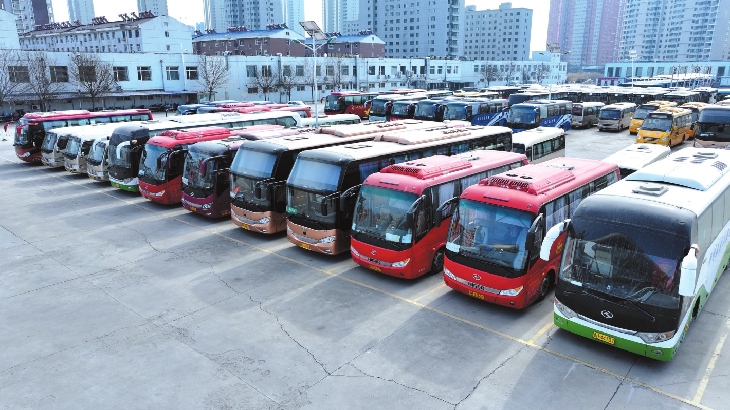 忻州汽車客運中心的大巴車整裝待發(fā)