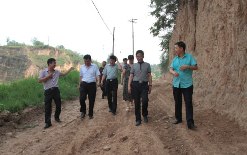 7月29日烈日炎炎,忻州氣溫高達30多度,下午16時許,忻府區(qū)區(qū)長趙志偉,副區(qū)長寧康平,忻府區(qū)國土資源局局長白蕾,解原鄉(xiāng)黨委書記丁國倉,鄉(xiāng)長王萬榮和相關部門負責人,帶著忻州市委、市政府,忻府區(qū)委、區(qū)政府對東社村村民的關懷,趕赴解原鄉(xiāng)東社村實地了解情況。區(qū)長趙志偉一行人驅車直奔現(xiàn)場,徒步來到村東南角高鐵架空橋下,認真察看高鐵架空橋下積水形成灘涂地段和防洪渠現(xiàn)狀后,漫步爬坡而上,走到村東南土方堆放處神臺溝(地名)。親自爬上高約7、8米的土堆,沿土堆一直走到源頭察看了積水情況,經過對現(xiàn)場地形以及土堆源頭積水情況的細致調研,一行人汗流夾背地返回村口,連口水也來不急喝就開始認真地分析問題。