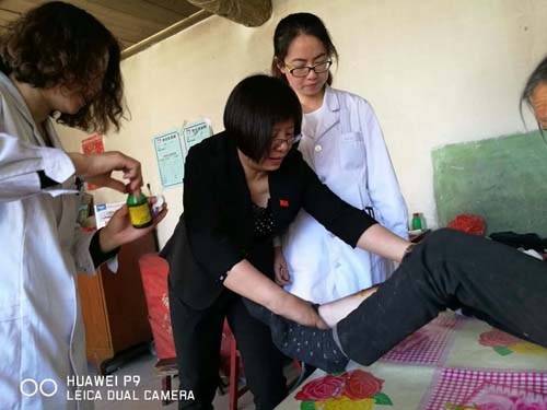 5月16日,忻州市衛(wèi)計委副主任楊春枝帶著黨支部部分黨員和忻州市中醫(yī)院的醫(yī)護人員再次趕赴到扶貧點寧武縣涔山鄉(xiāng)漚泥灣村,一進村她(他)們連口水也沒有來得及喝,就安排中醫(yī)院醫(yī)護人員給村民們進行體檢,楊主任和支部黨員就組織村委在村的6名黨員干部召開維護核心見諸行動專題黨課,她(他)們共同重溫黨章,面對黨旗舉手宣誓,楊主任親自上臺主講了一堂生動的黨課。隨后,她(他)們再次看望了貧困戶,在幫扶聯(lián)系貧困戶張存花家中,楊春枝主任從包里掏出自費購買的膏藥,并親手扶起衣服給老人貼在患處。“你們大老遠的每次都來看望我,上次我說腰疼,這次就給我?guī)砹烁嗨?,還親手給我貼上,不知道該怎樣感謝呀,這閨女就是比親閨女都親……”寧武縣涔山鄉(xiāng)漚泥灣村80歲的殘疾貧困戶張存花緊緊拉著扶貧干部忻州市衛(wèi)計委副主任楊春枝的手,激動地久久不肯松開。(郝法林 米永平)