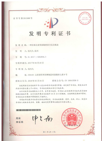 發(fā)明者張興父子從2010年創(chuàng)辦山西省神池縣糧油機(jī)械研究所以來,共獲國(guó)家專利24,其中發(fā)明4項(xiàng)?!笆秤糜涂寡趸b”是最近的一項(xiàng)科研成果。張興告訴記者,為了防止氧化,市面上的食用油絕大多數(shù)采用添加抗氧化劑,同時(shí)使用小包裝。而神池胡油,從不添加抗氧化劑。實(shí)驗(yàn)證明,零星食用不出一個(gè)月氧化值就會(huì)超過標(biāo)準(zhǔn),日久愈甚。使用這個(gè)新發(fā)明的食用油包裝,存儲(chǔ)和食用期達(dá)到2年之久,氧化值為5.5,仍在GB/T5538標(biāo)準(zhǔn)≤6范圍之內(nèi)。