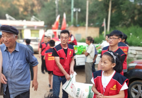 在發(fā)放現(xiàn)場(chǎng),受災(zāi)群眾感受到了志愿者的關(guān)愛(ài),看在眼里,暖在心里,整個(gè)村里呈現(xiàn)出一片溫馨快樂(lè)的氛圍。