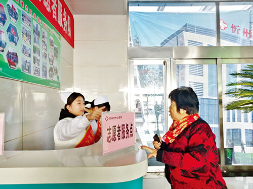 本報訊(實習記者 王菲)“大姐,您是哪里不舒服?”“我是來做檢查的,慢性病是在哪看呢?”“這個不在咱們這棟樓,我陪您過去吧?!痹谛弥菔兄行尼t(yī)院的門診大廳,一位大姐看到大廳里人來人往,不知道該到幾樓找哪位醫(yī)生看病,志愿者見狀,快步走上前去,面帶微笑地與大姐打招呼,并很快帶著大姐去了就診區(qū)。