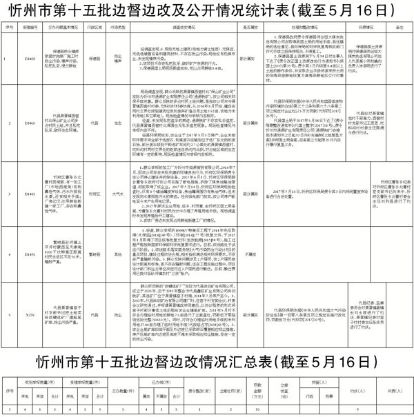 我市高度重視,立即組織查處,截至5月16日,督辦的5件群眾反映問題已辦結。其中,確認不屬實1件;確認部分屬實4件。對于部分屬實已辦結的環(huán)保問題,分別采取了相應處理措施,共罰款10萬元,對9名相關責任人進行約談。對5件群眾反映問題調查處理情況進行了信息公開。