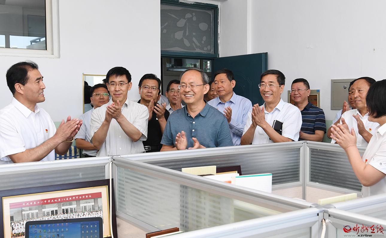 近年來(lái),忻州一中優(yōu)生培養(yǎng)取得階段性成果,綜合辦學(xué)水平大幅提升,高考一本達(dá)線率連年在85%以上,二本達(dá)線率逼近百分之百,教育質(zhì)量享譽(yù)三晉,教學(xué)成績(jī)位列全省第一方陣,這些都離不開(kāi)該校全體教師的辛勤付出。鄭連生一行詳細(xì)察看了校園環(huán)境,并到數(shù)學(xué)教研室與教師進(jìn)行交流,聽(tīng)取教育教學(xué)意見(jiàn),詢問(wèn)工作生活上的困難。鄭連生指出,百年大計(jì),教育為本;教育大計(jì),教師為本,教師是教育事業(yè)發(fā)展的基礎(chǔ),要高度重視并切實(shí)抓好教師隊(duì)伍建設(shè),不斷提升教師的教學(xué)水平,為教師的工作和生活創(chuàng)造便利條件。各級(jí)各部門要始終堅(jiān)持教育優(yōu)先發(fā)展戰(zhàn)略,加大財(cái)政投入,加強(qiáng)政策支持,全面優(yōu)化教育發(fā)展環(huán)境,推動(dòng)忻州教育水平再上新臺(tái)階,為我市經(jīng)濟(jì)社會(huì)發(fā)展培養(yǎng)更多人才。
