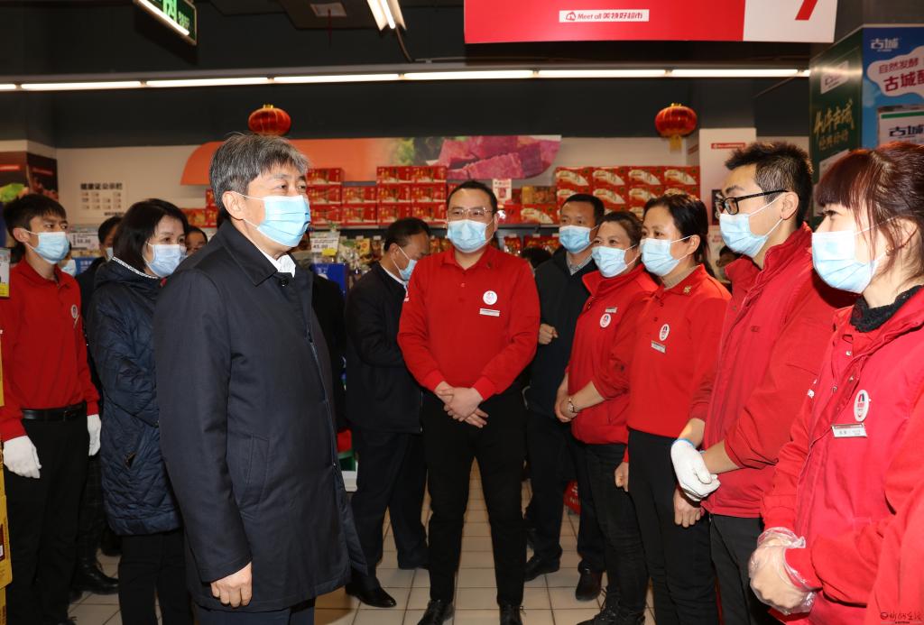 在美特好超市,朱曉東認真察看蔬菜、肉類、海鮮等商品,詢問價格、產(chǎn)地、供應(yīng)等情況,仔細檢查市場疫情防控和食品安全責(zé)任落實情況,了解冷鏈?zhǔn)称方?jīng)營管理工作,隨機抽查消防栓是否有水和工作人員實際操作。他強調(diào),群眾能不能過好年,市場供應(yīng)是關(guān)鍵。要嚴格落實公共場所疫情防控要求和應(yīng)急處置等防控措施,全力保障消費安全。工作人員要在做好自我防護的同時,督促進店顧客戴好口罩,嚴格落實體溫檢測和行程碼、健康碼查驗措施。要切實保障“菜籃子”“米袋子”“果盤子”充足,全力做好節(jié)日市場穩(wěn)價保供工作。要時刻繃緊食品安全這根弦,強化冷鏈?zhǔn)称钒踩O(jiān)管,保持市場環(huán)境衛(wèi)生整潔,嚴格遵守食品進貨查驗制度,做好冷鏈?zhǔn)称蜂N售記錄、流向記錄,切實做到來源可查、去向可追,讓群眾過一個安定祥和的新春佳節(jié)。