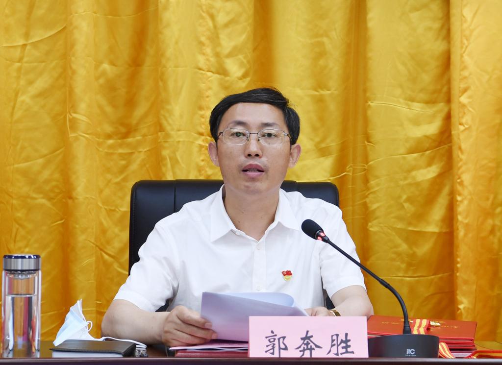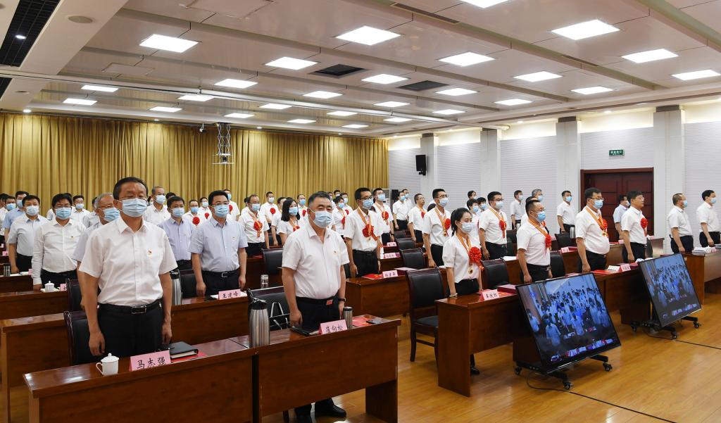 郭奔勝宣讀《中共忻州市委關(guān)于表彰全市優(yōu)秀共產(chǎn)黨員、優(yōu)秀黨務(wù)工作者、先進(jìn)基層黨組織的決定》。劉紀(jì)森 攝