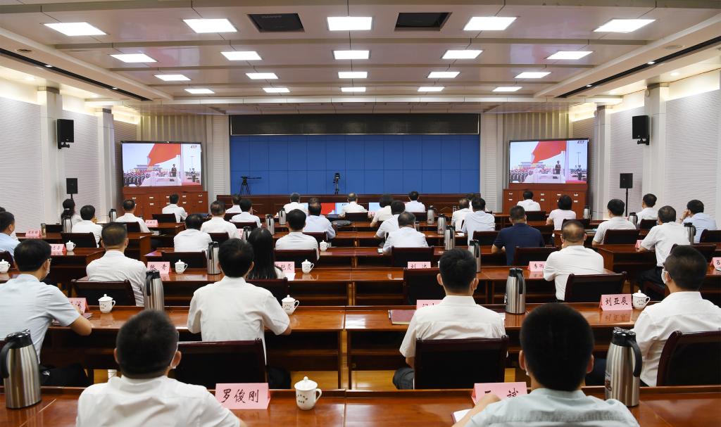 市領(lǐng)導(dǎo)集中收聽(tīng)收看大會(huì)實(shí)況直播。劉紀(jì)森 攝