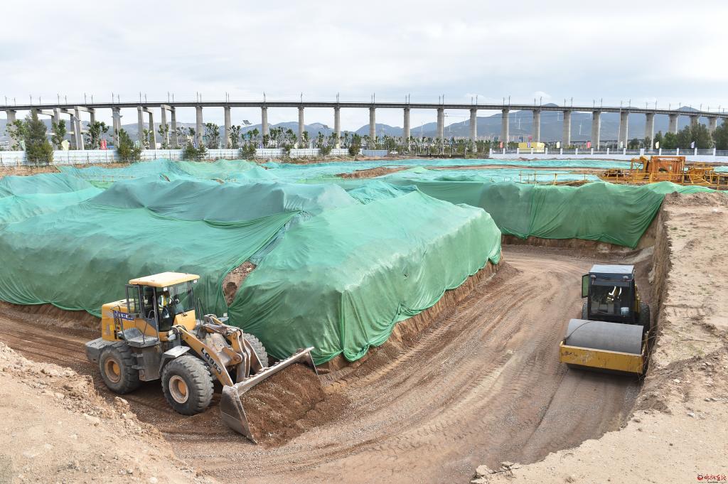 在西雙萬(wàn)噸智慧物流園觀摩檢查鐵路專用線運(yùn)營(yíng)情況。馮曉磊 攝