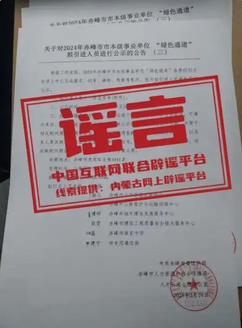 辟謠:內(nèi)蒙古赤峰市人力資源和社會保障局發(fā)布嚴(yán)正聲明