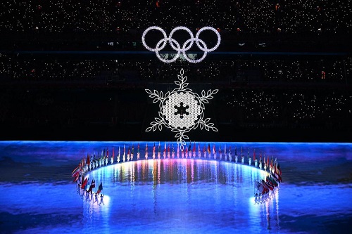 2月4日晚,第二十四屆冬季奧林匹克運(yùn)動(dòng)會(huì)開(kāi)幕式在北京國(guó)家體育場(chǎng)舉行。這是開(kāi)幕式上的“冰雪五環(huán)”。新華社記者丁旭 攝