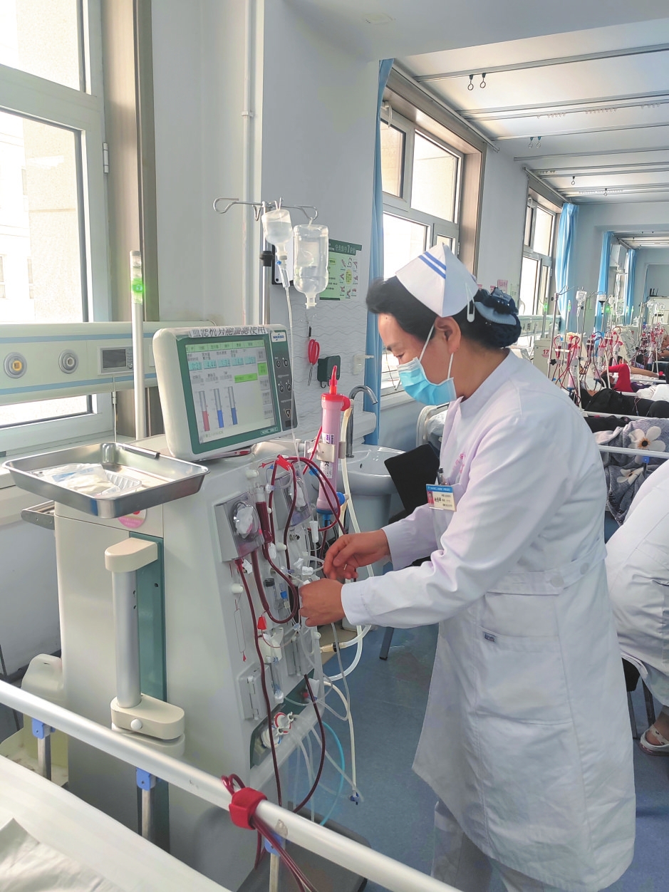 趙香嬋1992年參加工作,2010年被任命為血液透析科護士長,帶領(lǐng)同事積極籌備并組建科室。工作中,她培訓(xùn)護士技術(shù)操作,帶領(lǐng)他們觀察病情、排除機器故障、處理急性并發(fā)癥,下班后修訂相應(yīng)的制度流程,讓醫(yī)院的護理工作做到規(guī)范化、標(biāo)準(zhǔn)化。多年來,她帶領(lǐng)團隊致力于打造原平市一流的血液凈化中心,現(xiàn)科室有長期維持性透析患者190名,每年增加患者30多名,年血液凈化人數(shù)達(dá)2.3萬例次,是原平市技術(shù)力量雄厚、病人數(shù)最多、透析人次最多的血液凈化中心,為該市及周邊縣(市)終末期腎病患者提供了就近就醫(yī)的便利,是原平市唯一的重點腎病特色???。