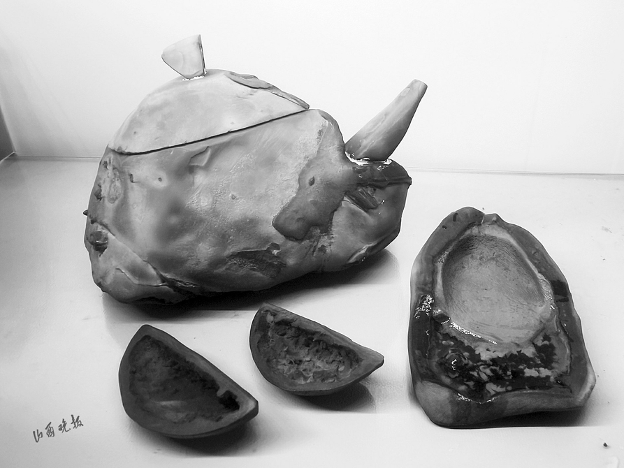 日前,在陽(yáng)泉市古生物化石保護(hù)協(xié)會(huì)的會(huì)員線下交流活動(dòng)中,71歲的奇石愛(ài)好者任富材將家中收藏的大量觀賞石標(biāo)本展示出來(lái)。他收藏陽(yáng)泉觀賞石及化石已有50余年,他的收藏包含各種地質(zhì)巖石標(biāo)本:靈璧石、木魚(yú)石、煤核石、木化石、海螺化石、方解石、瑪瑙石、鈣質(zhì)結(jié)核等,琳瑯滿目。在這些藏品中,一種褐鐵礦結(jié)核——木魚(yú)石,頗為引人注目,這些石頭被任富材制作成了硯臺(tái)、茶壺、石函、擺件等精美工藝品。任富材說(shuō),在《山西中藥典》一書(shū)中記載的禹余糧,其實(shí)就是木魚(yú)石,別名又叫“太一余糧”“石中黃子”,俗稱“還魂石”“鳳凰蛋”,有著吉祥如意的寓意,被民間爭(zhēng)搶收藏。眾多礦石愛(ài)好者對(duì)任富材的這些木魚(yú)石藏品產(chǎn)生了濃厚的興趣,也對(duì)陽(yáng)泉本地木魚(yú)石的儲(chǔ)量、特性、成分等打起了問(wèn)號(hào)。