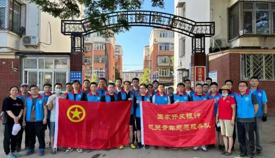 國家開發(fā)銀行鄉(xiāng)村振興部的田扶搖正和國家開發(fā)銀行的碩博志愿者隊一起,在社區(qū)清理淤泥:“大家都是利用周末時間自發(fā)前來的志愿者,有的同事還帶了家屬一起來支援災區(qū),也都想力所能及地出一份綿薄之力。”