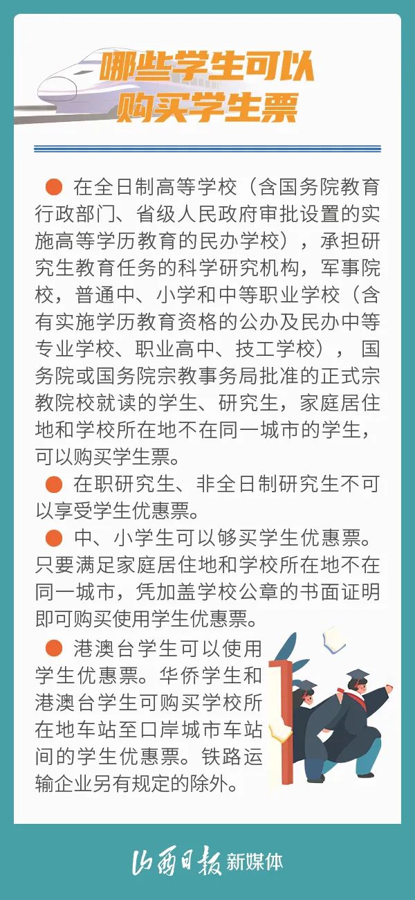 時間來到8月底,無論是準備返校的小伙伴,還是剛拿到通知書的準大學生,汽車、火車、高鐵學生票都要安排起來了。今天,向大家介紹購買火車學生票的方法和相關問題!