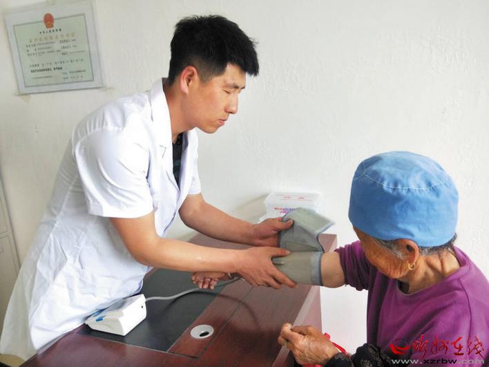 靜樂縣把健康扶貧和關(guān)愛送到村民家門口,為貧困群眾提供了實(shí)實(shí)在在的便利。圖為近日中莊鄉(xiāng)史家?guī)X村鄉(xiāng)村醫(yī)生邱晉德在為村民測(cè)量血壓。 閆曉梅 攝
