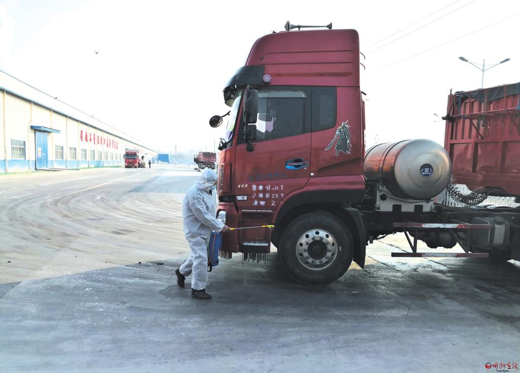 位于忻府區(qū)豆羅鎮(zhèn)建材工業(yè)園區(qū)的泰山石膏(忻州)有限公司在疫情防控工作中,嚴格人員進廠測體溫、掃行程碼、登記和車輛消殺制度,嚴防疫情輸入。圖為1月20日,該公司安保人員正在對進廠送原料的司機掃碼登記,并對車輛進行消殺。 (本報記者 張劍雄 攝)