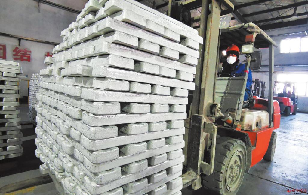 五臺云海鎂業(yè)工人正在進(jìn)行成品轉(zhuǎn)運。 張存良 攝
