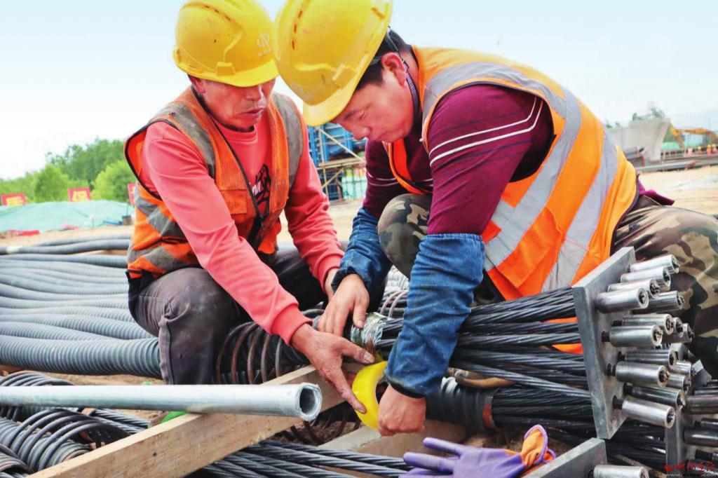 記者近日走進(jìn)南北通道菱形立交橋工地,只見密密匝匝的鋼筋林立如網(wǎng),奮戰(zhàn)在太忻大道一線的工人們頂烈日、冒酷暑、戰(zhàn)高溫,汗流浹背、干勁不減。技術(shù)員仔細(xì)檢查著每一個接口、鋼筋工熟練準(zhǔn)確排布每一組鋼筋結(jié)構(gòu),井然有序,規(guī)范自如。“南北通道菱形立交橋工程是項目中兩處混凝土澆筑工程之一,目前工程前期準(zhǔn)備工作已接近尾聲,全部澆筑工程任務(wù)將在9月10日前完成。”項目一隊負(fù)責(zé)人尹耀軍自信滿滿。