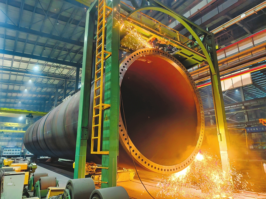 1月19日,在省級裝配式建筑產(chǎn)業(yè)鏈“鏈核”企業(yè)山西鋼構(gòu)科工有限公司智能制造車間內(nèi),一臺巨型壓力容器正進(jìn)行焊接作業(yè)。輥道與龍門架穩(wěn)穩(wěn)托舉著數(shù)十米長的鋼構(gòu)件,自動化系統(tǒng)實時監(jiān)測焊縫質(zhì)量,全力保障昔陽、陽曲、廣靈、屯留等地風(fēng)電項目塔筒制作。 賈曉瑞 王宇攝