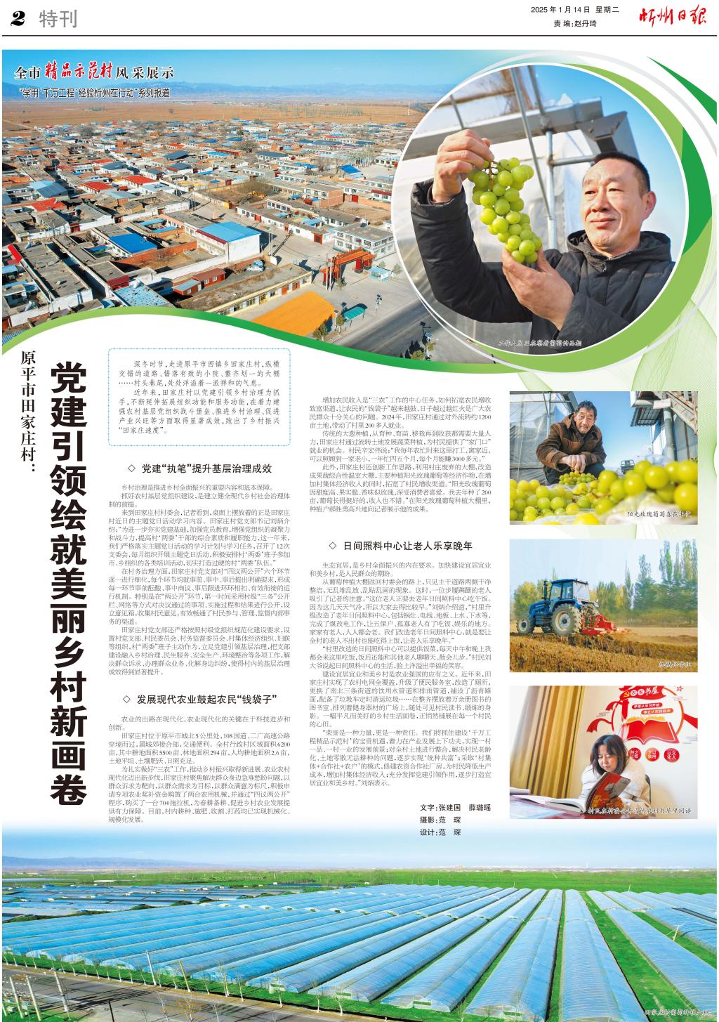 近年來,田家莊村以黨建引領(lǐng)鄉(xiāng)村治理為抓手,不斷延伸拓展組織功能和服務(wù)功能,在著力建強農(nóng)村基層黨組織戰(zhàn)斗堡壘、推進鄉(xiāng)村治理、促進產(chǎn)業(yè)興旺等方面取得顯著成效,跑出了鄉(xiāng)村振興“田家莊速度”。