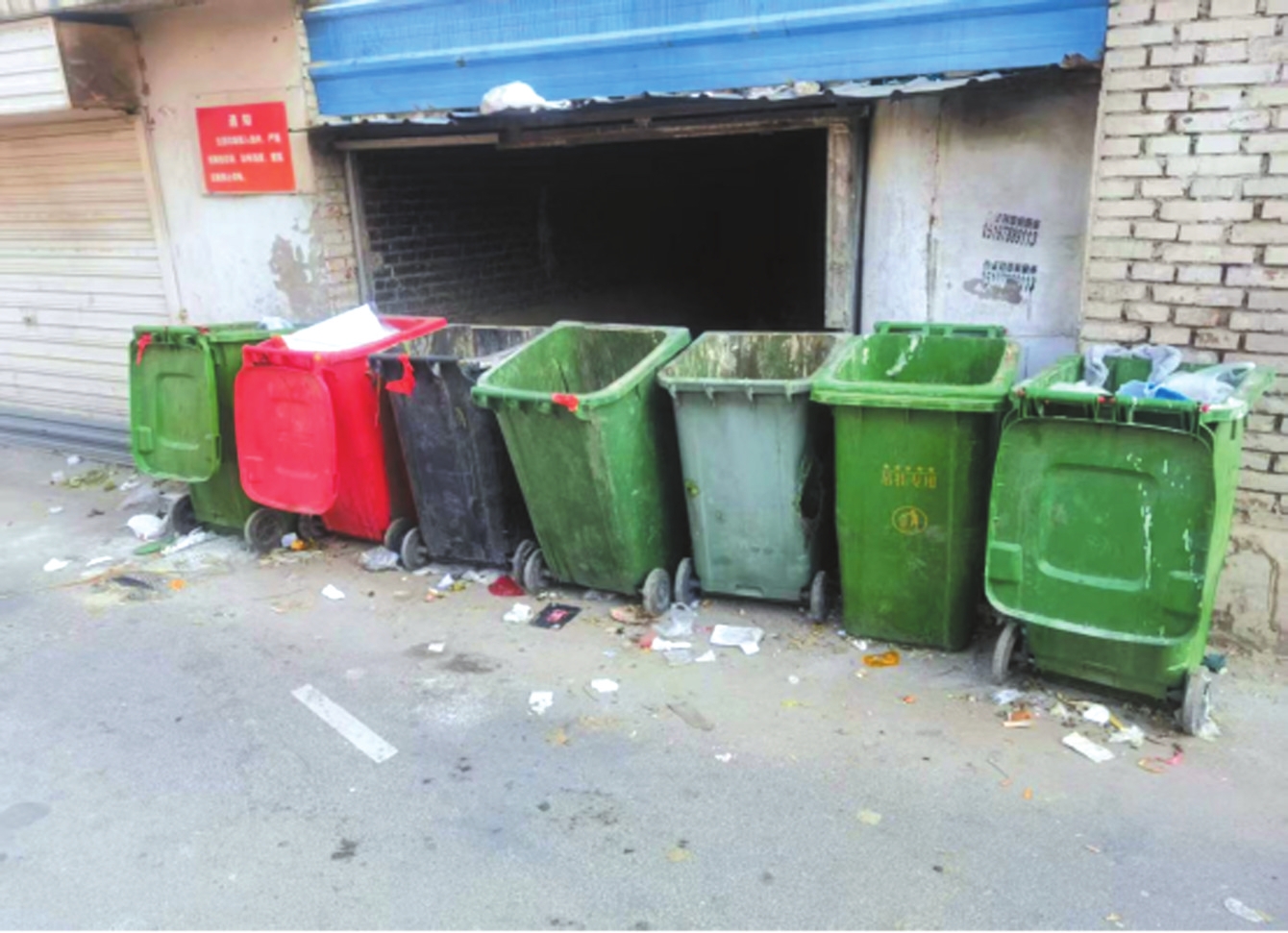 忻府區(qū)和平東街玻璃廠宿舍垃圾桶周?chē)K亂