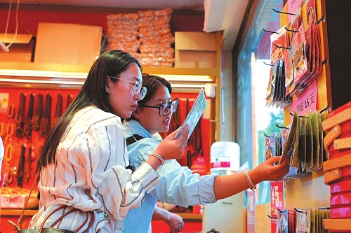 游客選購(gòu)文創(chuàng)產(chǎn)品。史文勇攝