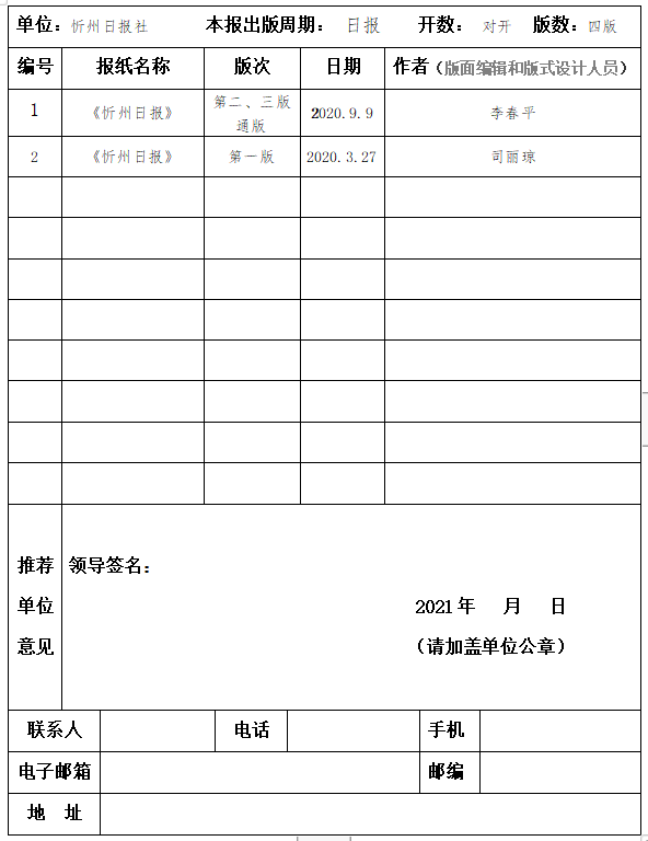 經(jīng)忻州日?qǐng)?bào)社編委會(huì)研究決定,以下作品擬推薦申評(píng)第三十屆山西新聞獎(jiǎng),現(xiàn)予以公示。有反對(duì)意見(jiàn)者,請(qǐng)將反對(duì)意見(jiàn)書面報(bào)至統(tǒng)籌部。