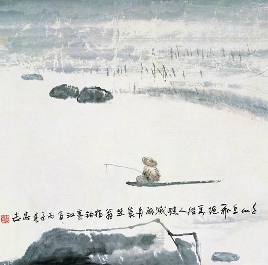 陳忠志《獨釣寒江雪》。來自人民網(wǎng)書畫頻道“人民美術館”
