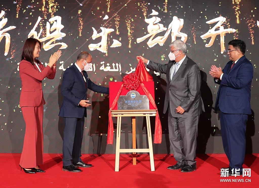 中國(guó)駐埃及大使廖力強(qiáng)、埃及高等教育部副部長(zhǎng)穆罕默德·艾曼·阿舒爾和開(kāi)羅大學(xué)校長(zhǎng)穆罕默德·奧斯曼·霍希特等通過(guò)線上和線下方式參加了揭牌儀式。